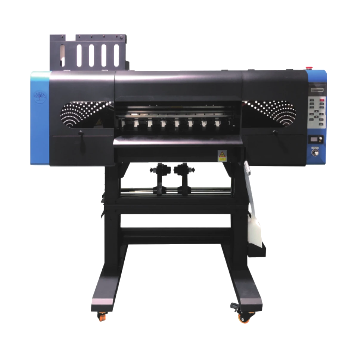 24 inch width using 2 heads with 1(C/M/Y/K)+1W or 1 head with 1W+1( C/ M/ Y/ K /FY/FO/FG/FM) on DTF Pet Film